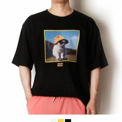 고양이 국내생산 워싱반팔티 커플반팔티 여름티셔 WFL0IDK