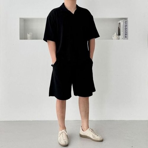 [셀러허브_여성트랜드패션]반바지 3컬러 카라 반팔티 남성 여름 세트 남녀 커플 데일리룩 카라티
