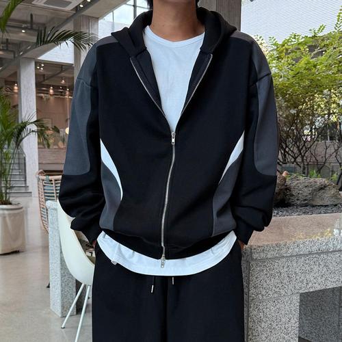 [옷자락] 남자 여자 커플 가을트레이닝 오버핏 배색 후드집업