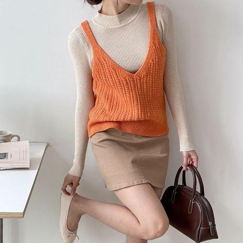 [옷자락]여자 뷔스티에 꽈배기 브이 7컬러 가을 울 니트조끼