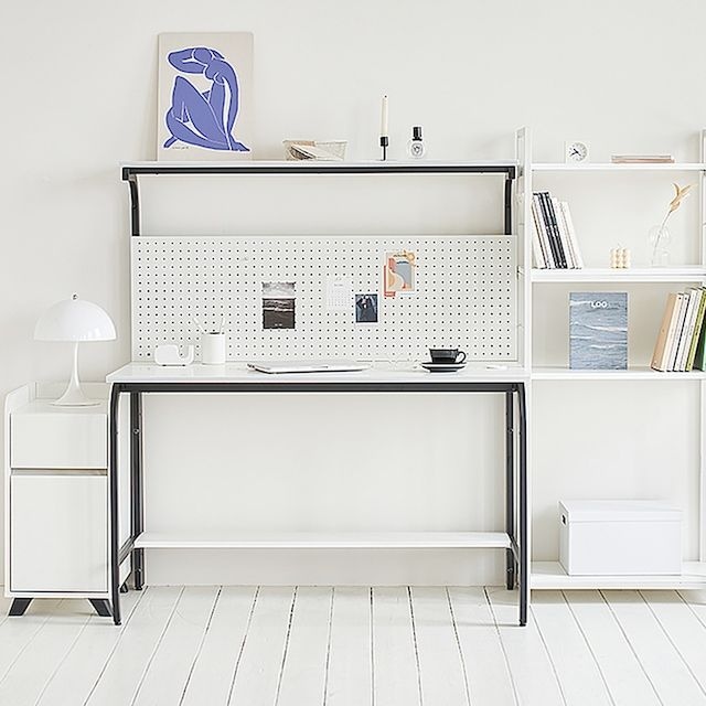 CProsis 컴퓨터책상 타공판 수납후크 추가 가능 게이밍 홈오피스 학생용 1000/1200/1400/1600mm, 흰색-타공판-부속품 풀세트