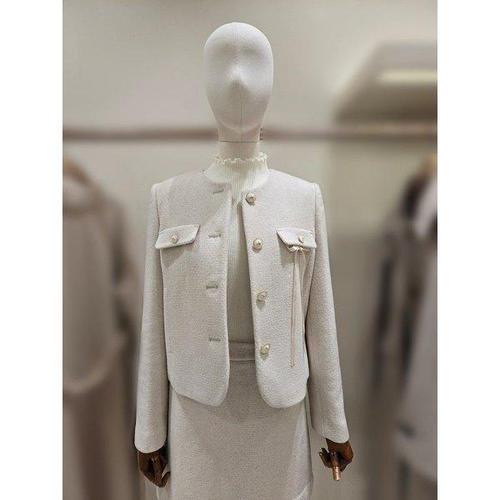 SAHINER 여성 봄 트위드 자켓 라운드넥 미니멀 클래식 스타일