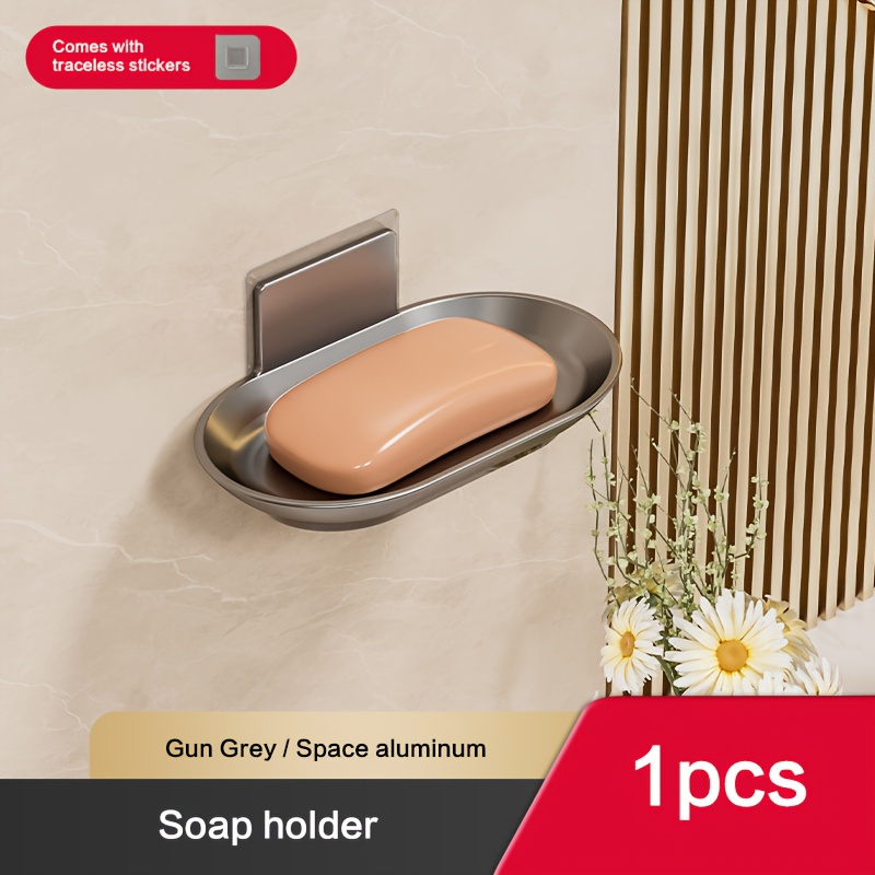 TEMU 1pc 벽걸이 알루미늄 비누병, 배수구 없음, 드릴 없음 설치, 샤워 및 싱크용 오발형 욕실 보관 랙, 그레이 컬러, 방수 및 내식성, 욕실 액세서리|현대 오발 디자인|방수 비누병, 욕실용 비누병