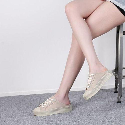 여성 캐주얼 무지컬러 캔버스화 뮬 스니커즈