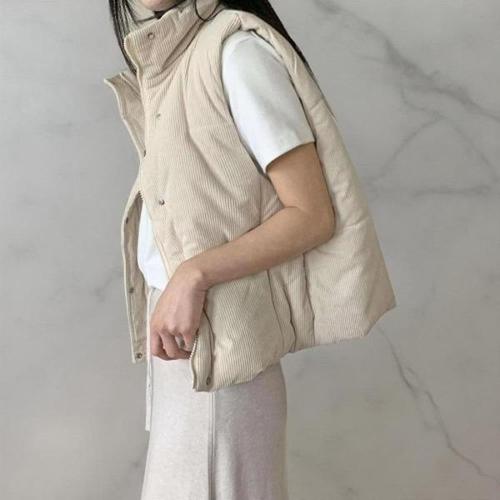 [다잇템][다잇템] 여성 드로우코드 폴라넥 일상용 패딩 코듀로이 조끼_23606824_588872