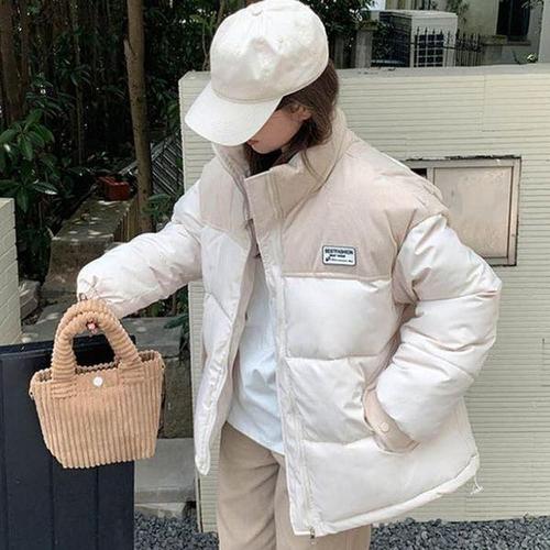 쥬시쥬디 여성용 J 배색 코듀로이 더플 하프 다운점퍼 JYDJ720D