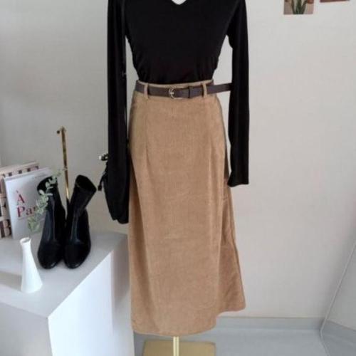 [옷자락]여성 하이웨이스트 코듀로이 벨트 긴 치마