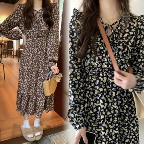 [다잇템][다잇템] 여자 드로우코드 꽃무늬 롱 스트랩 포인트 원피스_14878615_588872