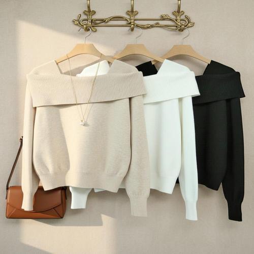 [다잇템]여자 스퀘어넥 골지 여성스러운 코디 니트
