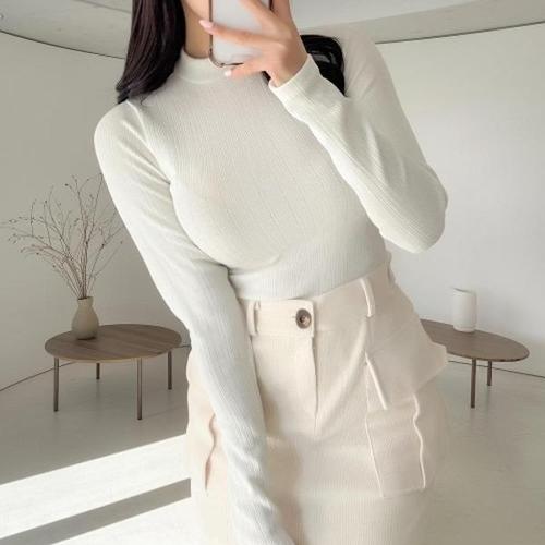 [다잇템][다잇템] 여자 잔잔 골지 코디 내의 모크넥 티셔츠_23936760_588872