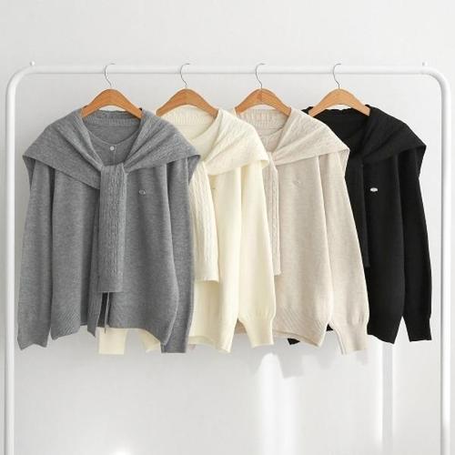 [다잇템][다잇템] 여성 코디 스웨터 망토 펜던트 라운드 카디건 심플_23943392_588872