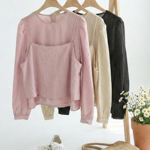 [다잇템]여성 코르셋 롱슬리브 블라우스 세트
