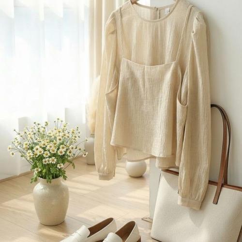 [다잇템][다잇템] 여자 세트 클래식 롱슬리브 코르셋 블라우스_24610450_588872