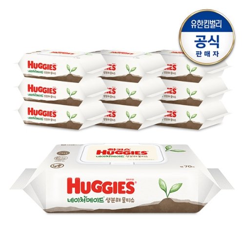 하기스 네이처메이드 생분해물티슈 캡형 70매X10팩