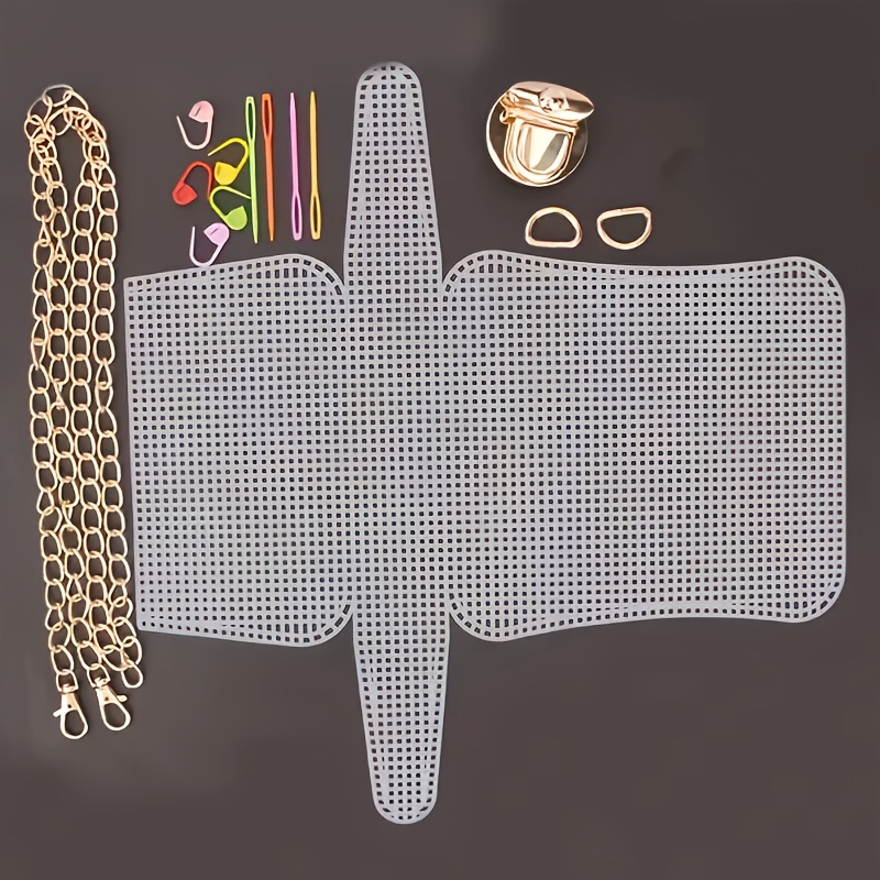TEMU 금속 체인 링크가 있는 1세트 DIY 직조 플라스틱 메쉬 키트 - 손수제작 핸드백 및 액세서리용, 다양한 색상, 공예 도구, 지갑 만들기 쉬움