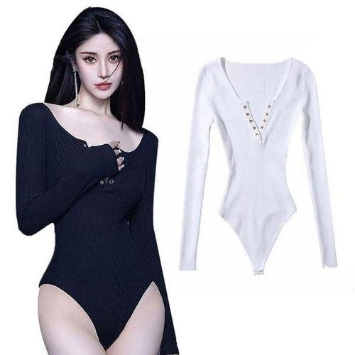 [셀러허브_여성트랜드패션]ONM 코비바디수트티 버튼 무지 긴팔 레이어드 V넥 트