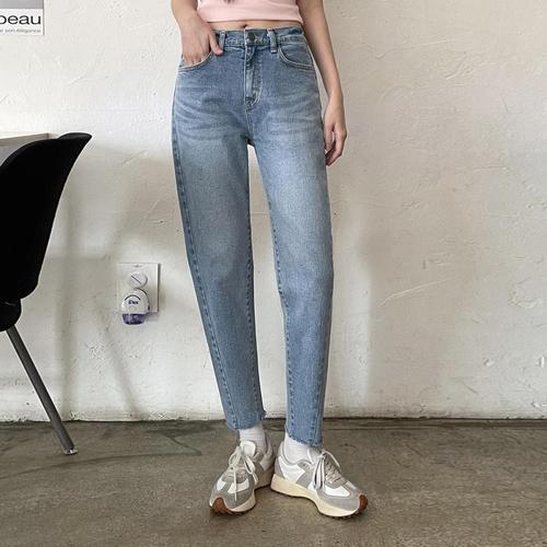 [옷자락]여성 일상용 슬림핏 중청색 워싱 스키니 진