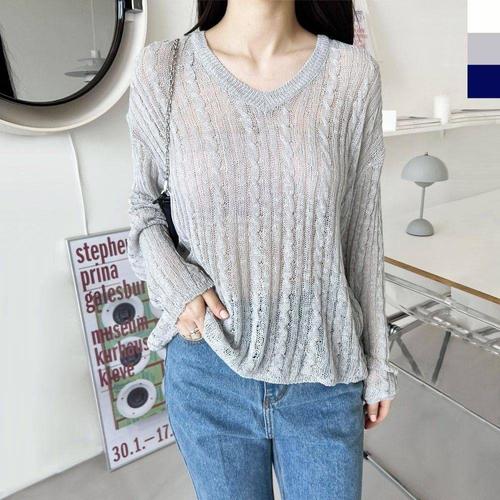 여자여름니트 여름긴팔니트 앙고라니트 니트 뽀얌 WFLR5GJ
