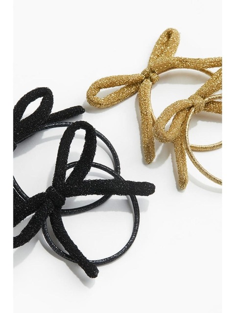 [에이치엔엠] 리본 디테일 머리끈 4피스 세트 골드 컬러/블랙 1304145001