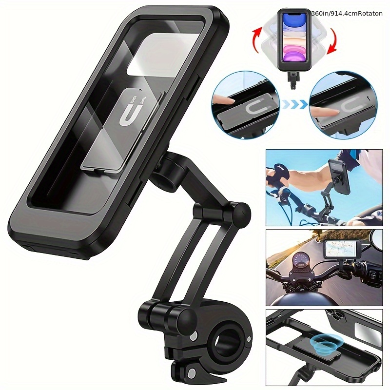 TEMU 모터사이클용 방수 폰 홀더, 터치 스크린/360° 회전이 가능한 범용 자전거 폰 마운트, 모터사이클용 폰 홀더, 모터사이클, 자전거, 유모차 핸들바에 적합, 4.0-6.8인치 폰에 적합