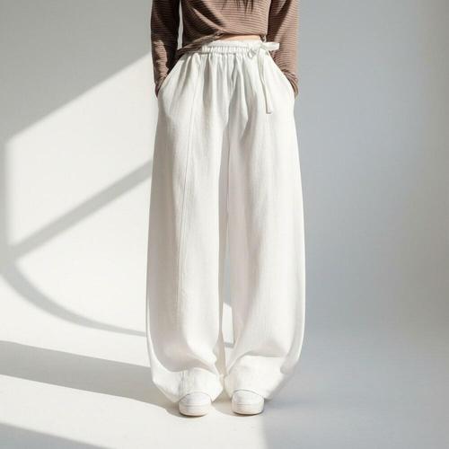 [신상오픈런]여성 면혼합 루즈핏 스트랩 디테일 와이드 팬츠