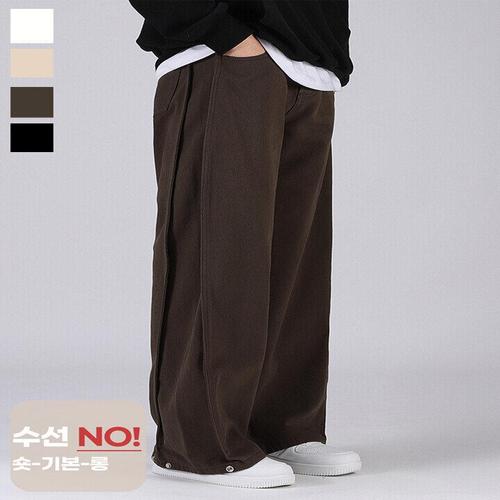 [후앙스]기장 선택 허리 스트랩 옆절개 세미 오버 와이드 코튼팬츠 HNCP6015