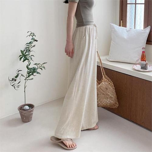 [미라클세븐]여성용 면혼합 루즈핏 스트랩 절개 디자인 와이드 바지