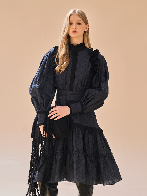 [까이에] [까이에] 블랙 프릴 면실크 원피스