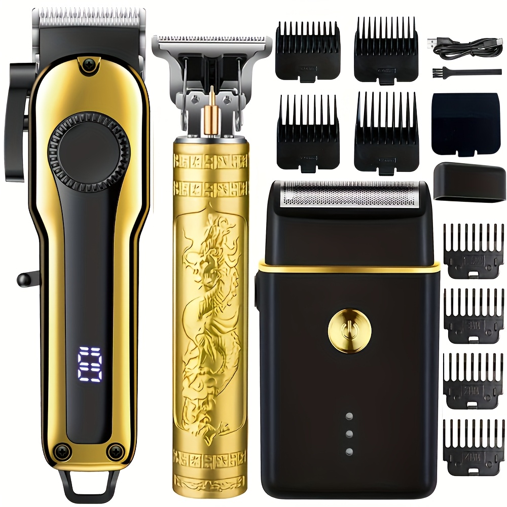TEMU 3pcs 무선 전기 면도기 및 헤어 클리퍼 세트 - 전문가용 남성용 수염 트리머 & 면도기 키트, USB 충전식, 제한된 빗, 남성 선물, 남성용 면도 키트