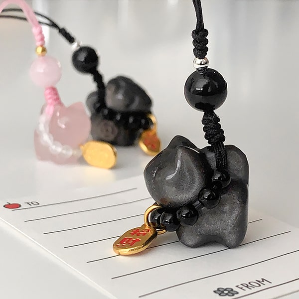 은요석 로즈쿼츠 흑요석 고양이 말 원석 액막이 키링