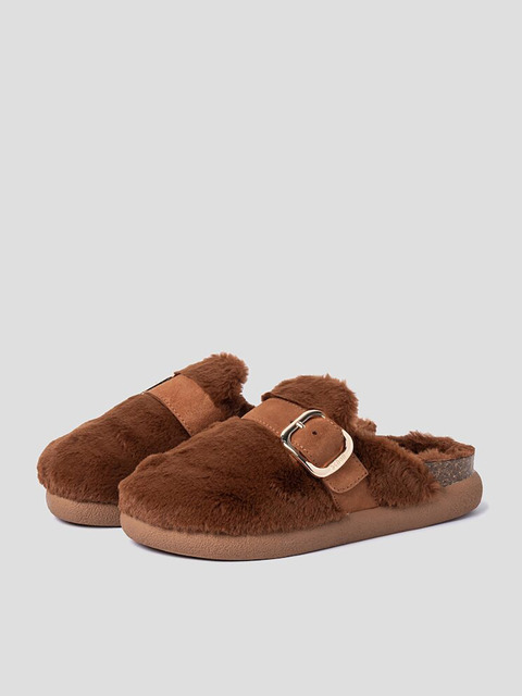 [숄] [SCHOLL] (WOMEN) 코르크 미드솔 퍼장식 크로그 샌들옐로이시 브라운 (HH49K2C17C)