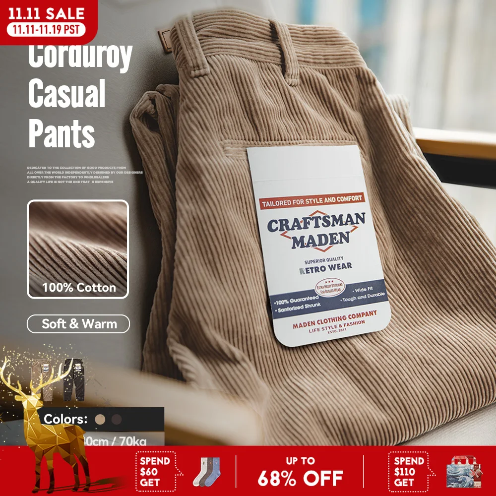 Maden 빈티지 루즈 코듀로이 바지 와이드 레그 미드 웨스트 스트라이프 벨벳 스트레이트 레그 팬츠 남성 가을 카고 바지