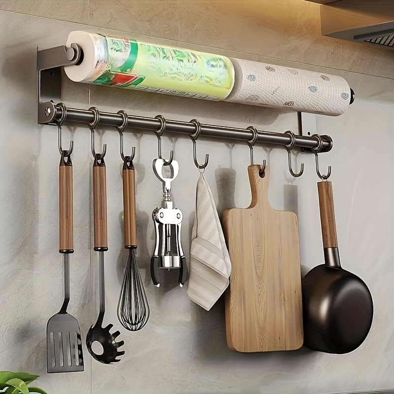 TEMU 현대적인 주방에 어울리는 8개의 후크가 있는 스테인리스 스틸 주방용품 정리대 - 벽걸이형 냄비, 팬, 조리도구 정리용 세이빙 주방 정리 및 보관 용품