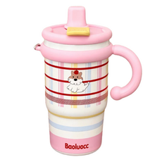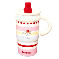 리안 강아지 일러스트 라인 패턴 손잡이 보온 텀블러, 1개, 600ml, 핑크