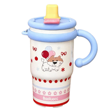 리안 강아지 일러스트 라인 패턴 손잡이 보온 텀블러, 1개, 600ml, 블루