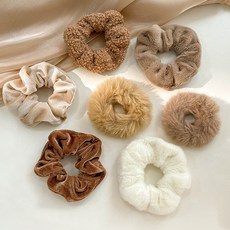 위더스욕실용품 솜사탕 캐주얼 데일리 헤어슈슈 곱창 머리끈 7종 세트 브라운톤