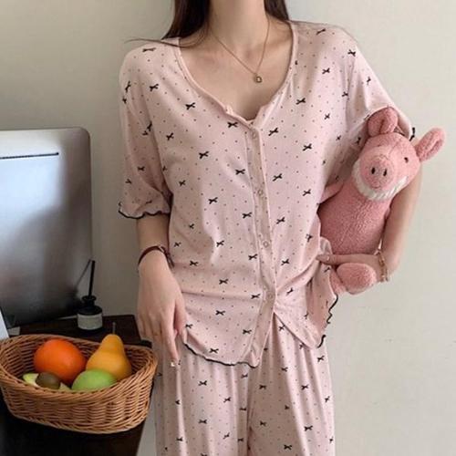 [옷자락] 여성 홈웨어 리본패턴 캡나시 반팔티팬츠 파자마 세트