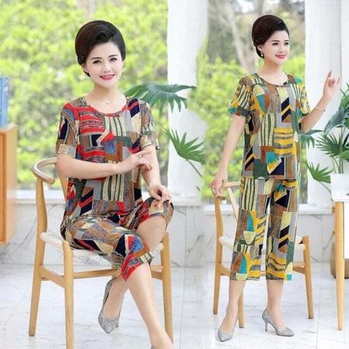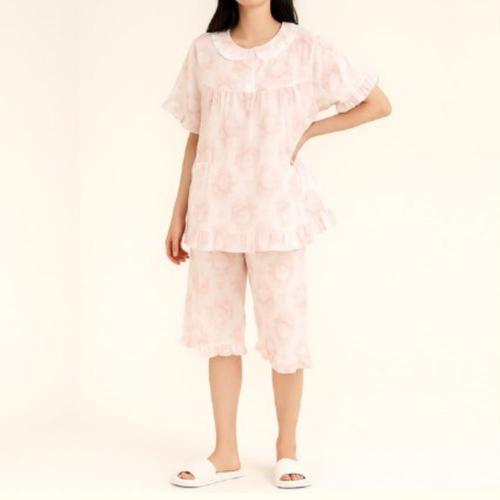 [미라클세븐]여성용 쿨링 반팔 바지 잠옷 세트 나염 디자인