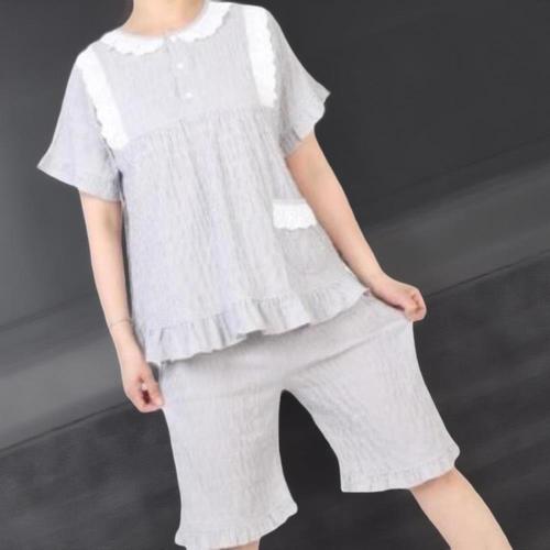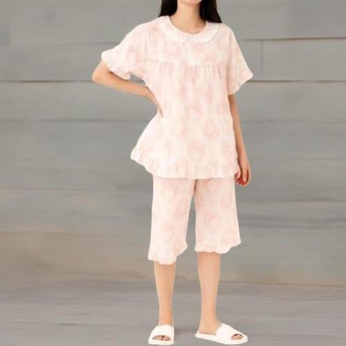 [신상오픈런]여성용 쿨링 반팔 반바지 잠옷 세트 홈웨어 나염 디자인