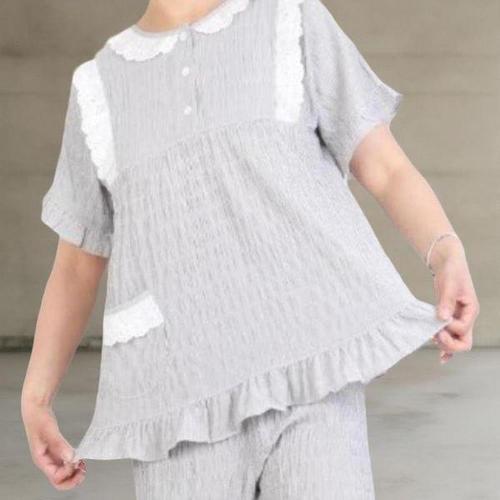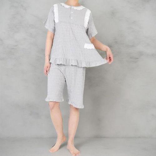 [옷자락] 여성 심플 쿨링 반팔 반바지 잠옷 세트