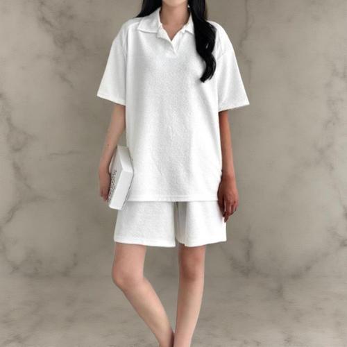 [옷자락] 남녀공용 오픈칼라 쿨링 반팔 티셔츠 반바지 세트