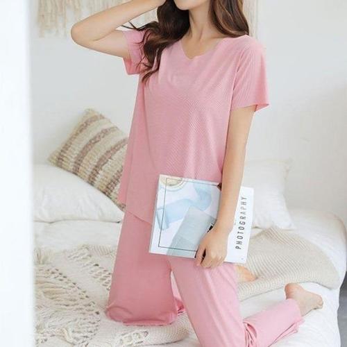 [셀러허브_여성트랜드패션]ONM 여름 여성 홈웨어 잠옷 세트 반팔티 아이스 쿨바지