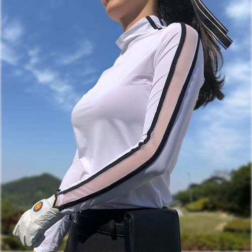 [로로얼로이]여성골프이너 사이드매쉬 두줄 냉감 골프 반목 기능성 쿨 이너 목 자외선차단 티셔
