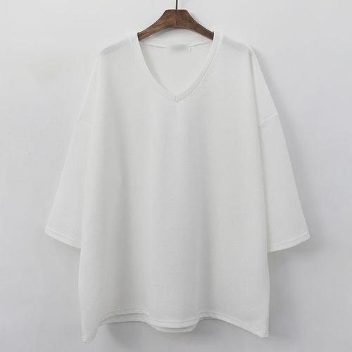 [샵앤]국산 여성 왕밴드 라운드넥 루즈핏 7부소매 얇은 무지 티셔츠 DAI-WSH-20385-화이트