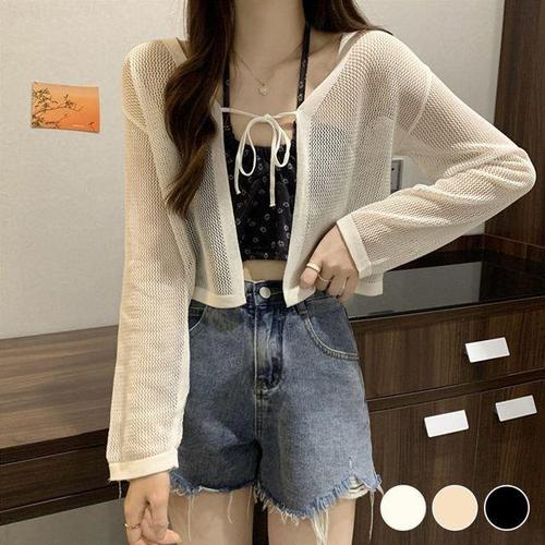 [모노무드]LMO 걸스경량 망사 가슴끈 숏기장 패션 데일리 쿨 니트집업