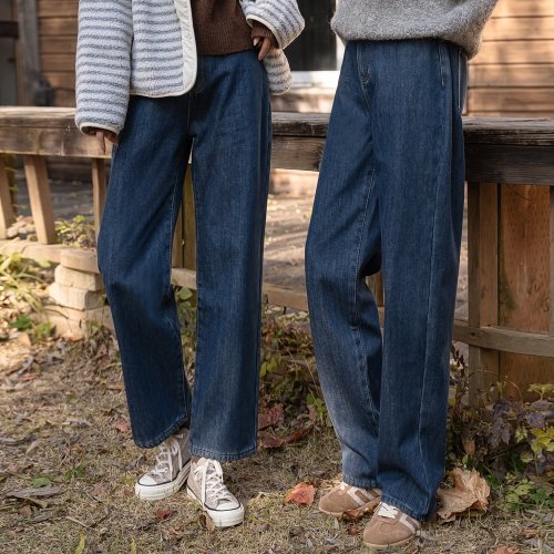 가비진 여성용 후끈 따뜻 안감 융털 기모 스판 데님 일자 와이드 청바지 데님팬츠 겨울 바지