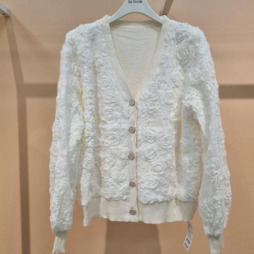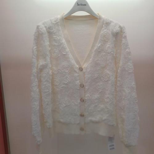 [라티움]라티움 HC34 봄간절기 앞오픈형장미꽃레이스퀴노아 짧은니트가디건 T2613cd08 (45335022)
