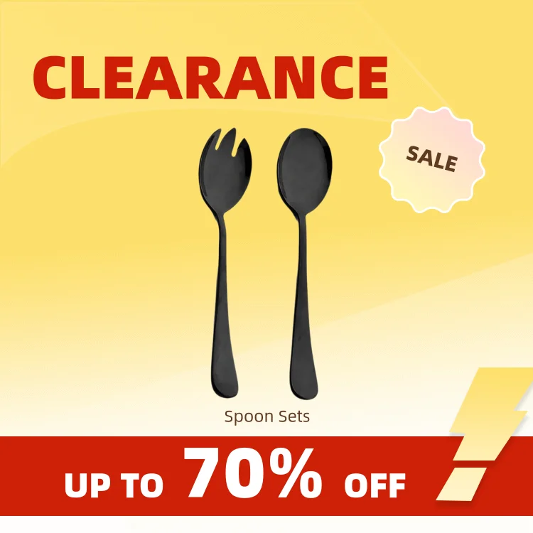 클리어런스_2개 블랙 샐러드 스푼 포크 스테인리스 스틸 샐러드 디저트 스푼 커틀러리 세트 서빙 스푼 주방 용품 액세서리