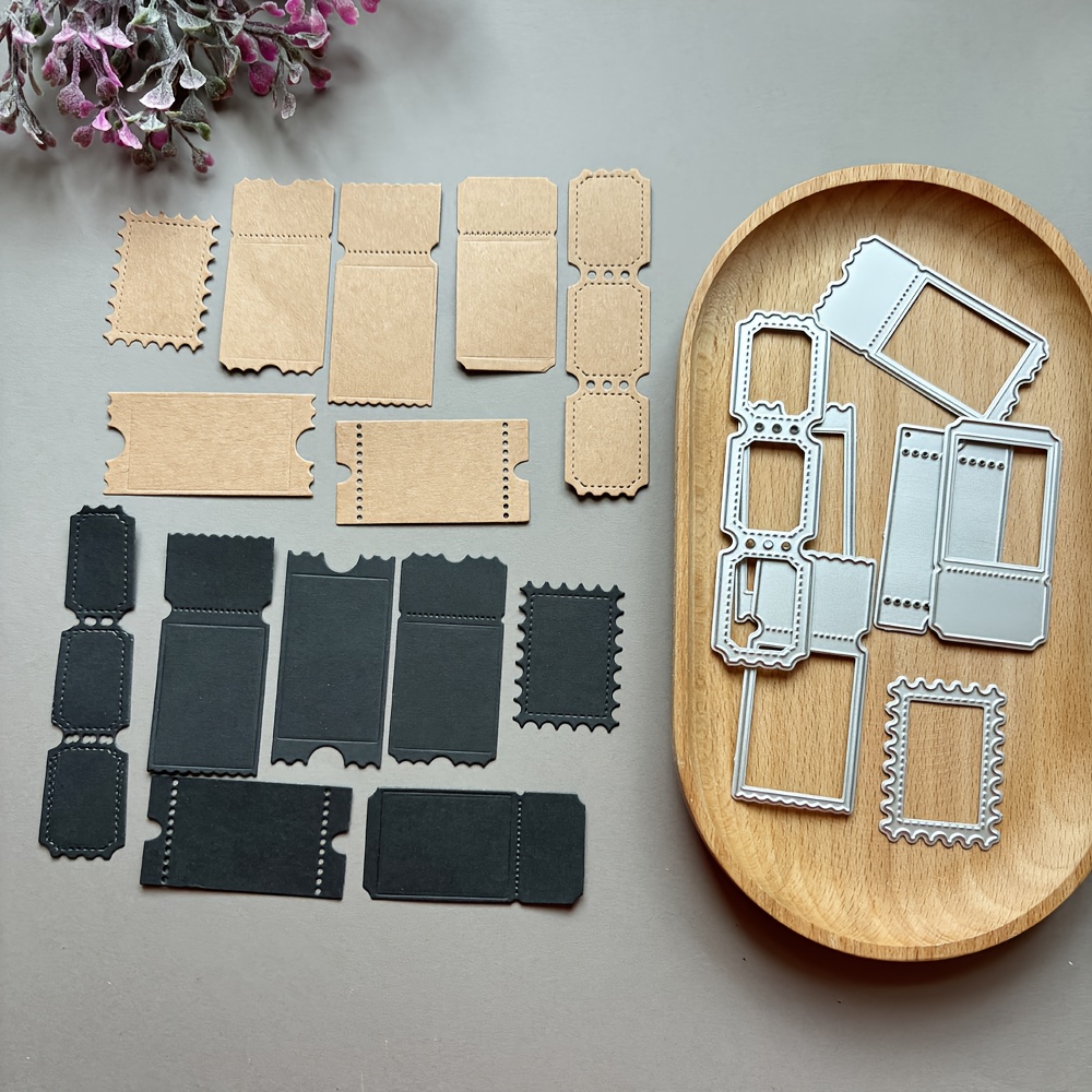 TEMU 작은 스탬프 1세트, 라벨 티켓 스틱, 레트로 시리즈 커팅 다이 템플릿 종이 아트 엠보싱 핸드북 다이, 스크랩북용 창의적인 커팅 다이 엠보싱 종이 카드 앨범 공예 다이, 아름다운 수제 선물 제작