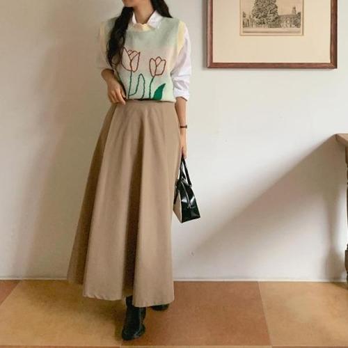 [옷자락]여자 스웨터 U넥 여성스러운 크로쉐 조끼